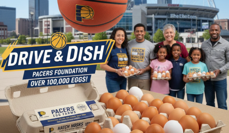 The Pacers Foundation’s “Drive & Dish” initiative announced a new partnership today with Kroger, MPS Egg Farms, and HATCH for Hunger to donate more than 100,000 eggs to food-insecure Hoosiers throughout the state.